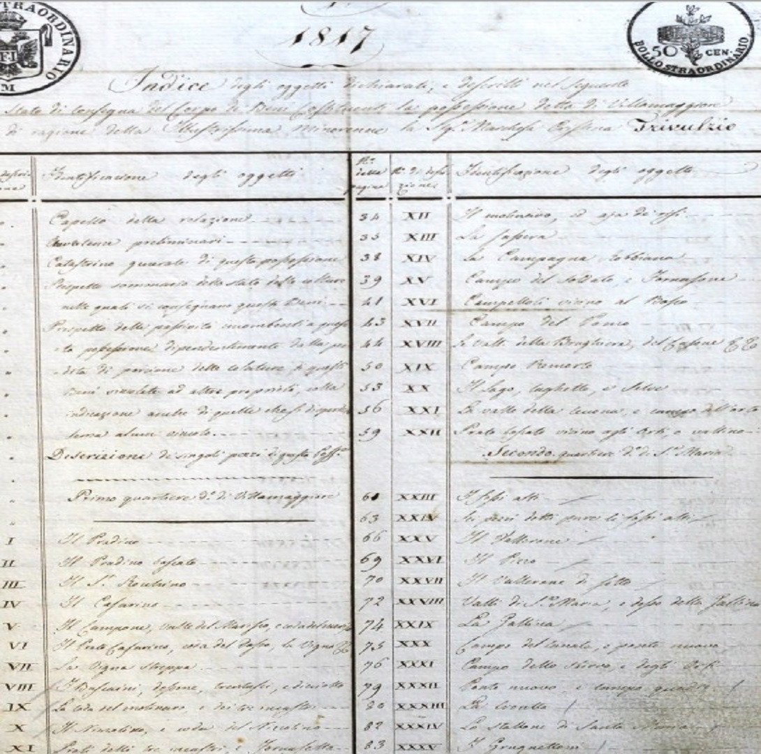 si apre con queste parole: “1817. Indice degli oggetti, dichiarati e descritti